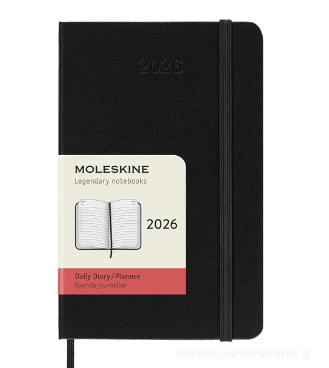 Moleskine 12 mesi - Agenda giornaliera nero - Pocket copertina rigida 2026.