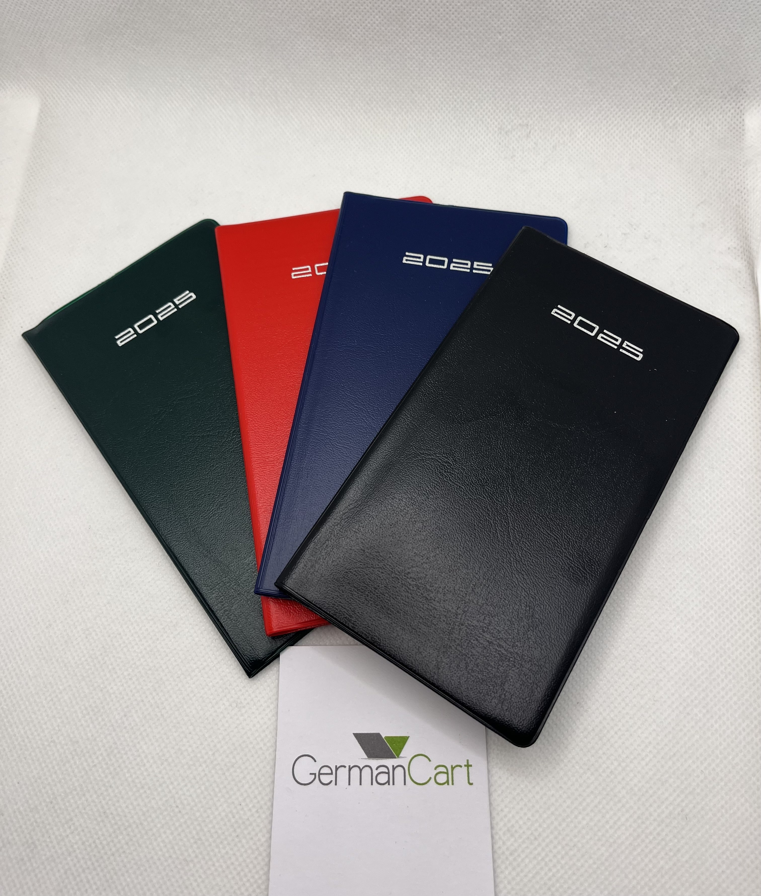 Planning mensile da taschino 2025 Cangini Filippi mod. 190. Formato cm 7x13,5. Primo fascicolo da 14 ante diario, secondo fascicolo 7 ante rubrica. Custodia PVC alfa. Confezione da 20 pezzi con 4 colori: ROSSO VERDE, BLU, NERO. NB:non è possibile scegliere la variante dell' articolo.