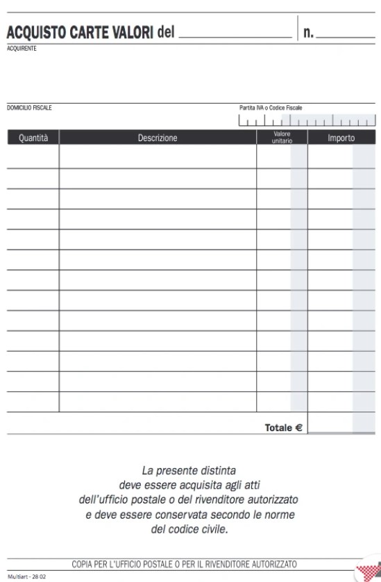 BLOCCO ACQUISTI VALORI BOLLATI 50X2 220X148 MM 2802