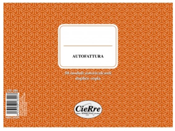 Blocco autofattura duplice copia, formato 15x23cm, carta autoricalcante, numero pagine 50x2.