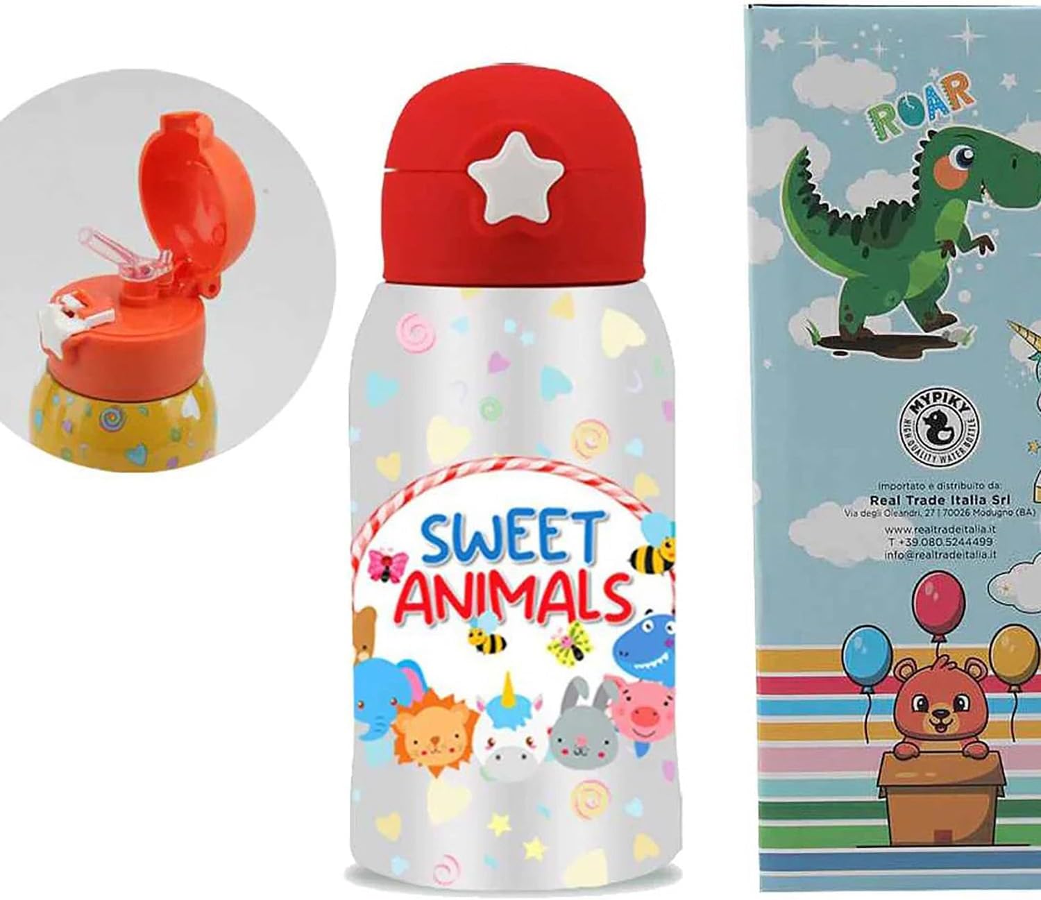 MYPIKY Borraccia Termica Baby con Cannuccia ml 500. Fantasie assortite. Si prega di specificare in fase di ordine il colore/modello desiderato altrimenti verrà spedito casualmente.