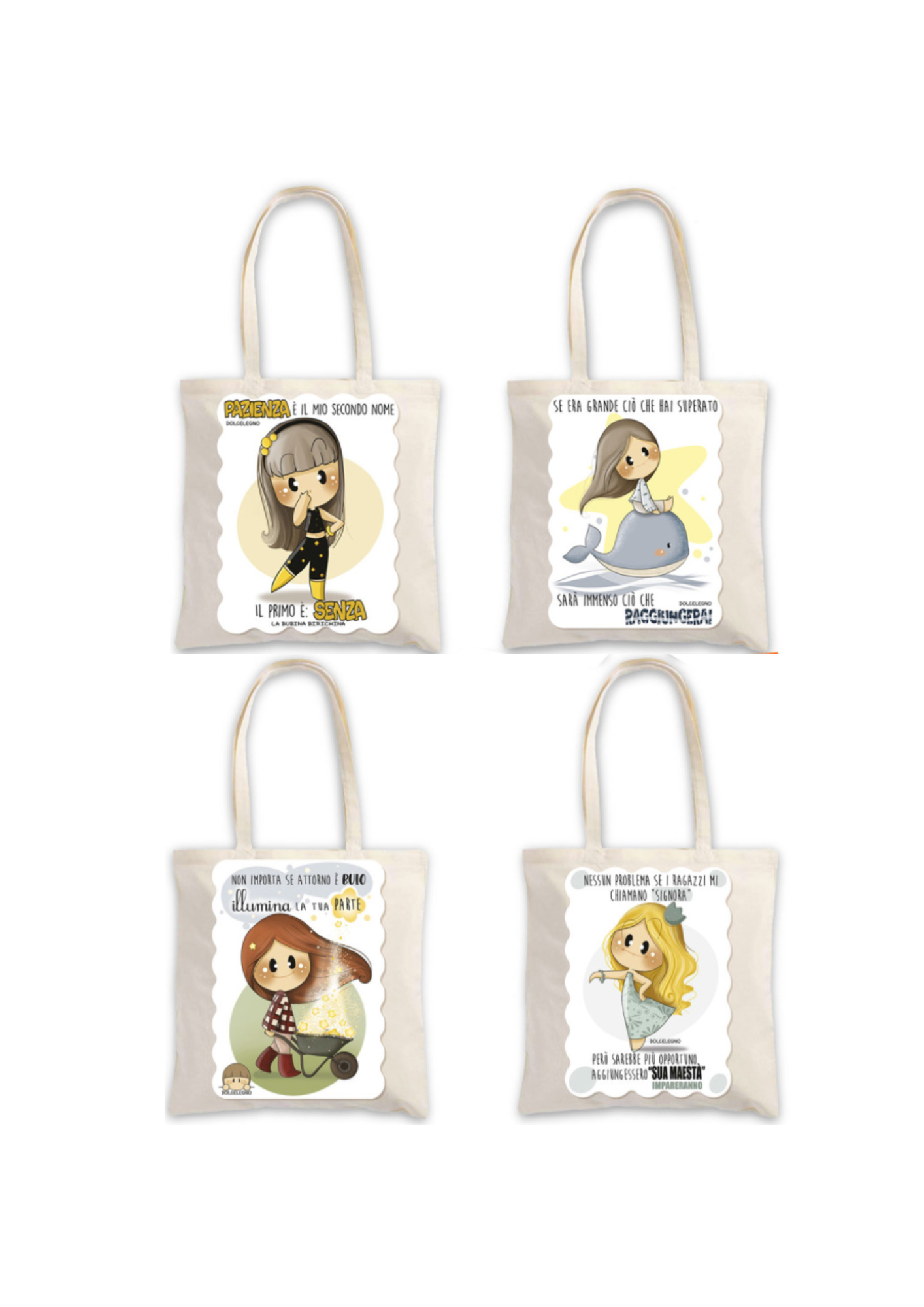 Shopper in cotone Le Bubine - marca: Cromo. Formato: 38 x 42 cm.Assortite in 4 soggetti. Non è possibile scegliere la variante dell'articolo, verrà spedito casualmente in base allo stock disponibile.