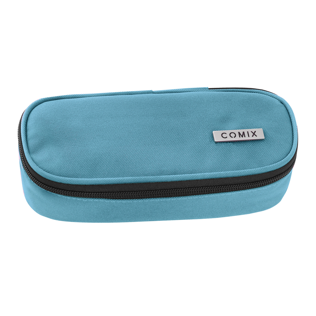 Astuccio ovale Comix monocolore azzurro. Dimensioni: 22 x 5 x 7 cm. Il divisorio interno permette di mantenere tutto in ordine e facilmente accessibile. I passanti elastici su entrambi i lati assicurano che i tuoi strumenti di scrittura rimangano al loro posto, evitando che si mischino o si rovinino.