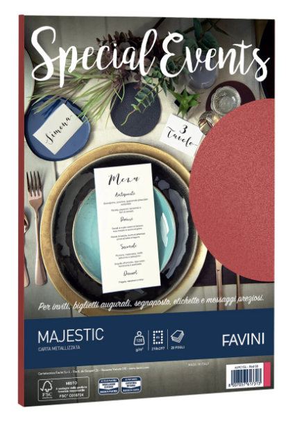 Carta da 120gr metallizzata majestic favini dai riflessi brillanti e pregiati. Utilizzabili per scrittura manuale, inkjet, laser e copy. Formato 21x29,7cm.
