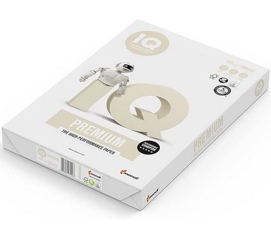 Carta A3 bianca Mondi IQ Premium, con elevatissimo punto di bianco, affi dabile su tutte le fotocopiatrici e stampanti digitali laser ad altissima velocità. Questa carta ha la certificazione FSC, unagrammatura pari a 120 g/mq ed è venduta in 1 risma singola da 250 fogli.