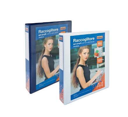 Raccoglitore bianco in polipropilene con anima in cartone. Tasche trasparenti saldate sul dorso e sulla copertina per la personalizzazione e con 4 anelli a “D”. Disponibile in colore bianco o blu. SIPREGA DI SPECIFICARE IN FASE D'ORDINE IL COLORE-MODELLO DESIDERATO, ALTRIMENTI VERRÀ SPEDITO CASUALMENTE.
