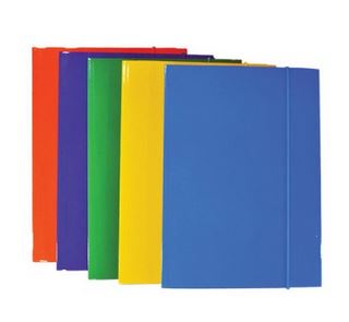 Cartellina con elastico in cartoncino plastificato da 600gr/mq a 3 lembi in confezione da 10 pezzi, colore assortito (la confezione contiene pezzi di diversi colori).