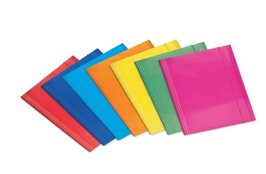 Cartellina realizzata in cartoncino colorato e plastificato. Elastico di chiusura. Colore blu. Confezione da 10 pezzi.