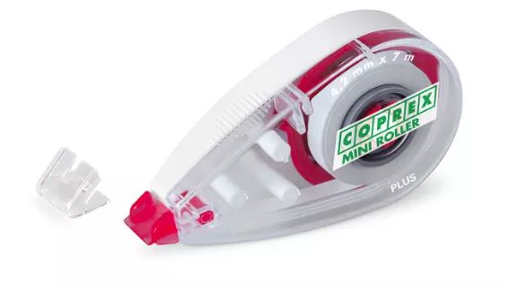 Correttore a nastro con involucro dalle dimensioni ridotte. Versione Coprex con cappuccio di protezione del nastro.