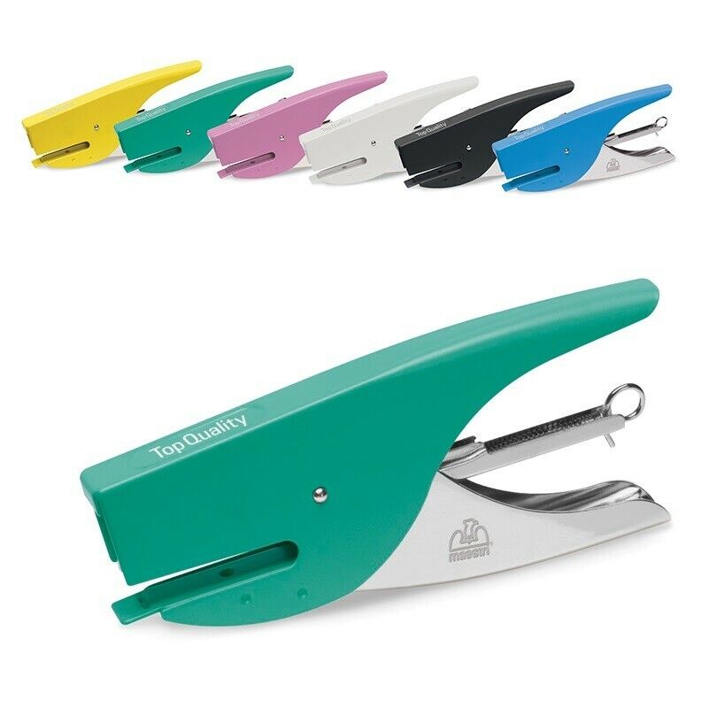Cucitrice passo 6mm, disponibile in 6 colori: nero, bianco, azzurro, rosa, bianco, verde e giallo. Carica fino a 170 punti, con una profondita di cucitura di 42mm