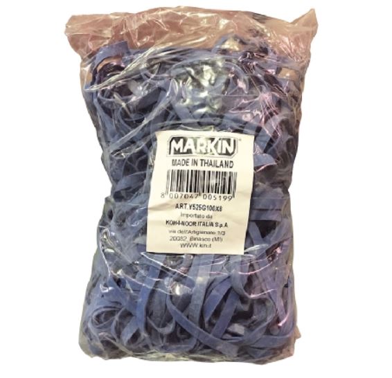 Sacchetto 1 kg fettucce in gomma blu diam. 160x8mm. Adatti per qualsiasi utilizzo.