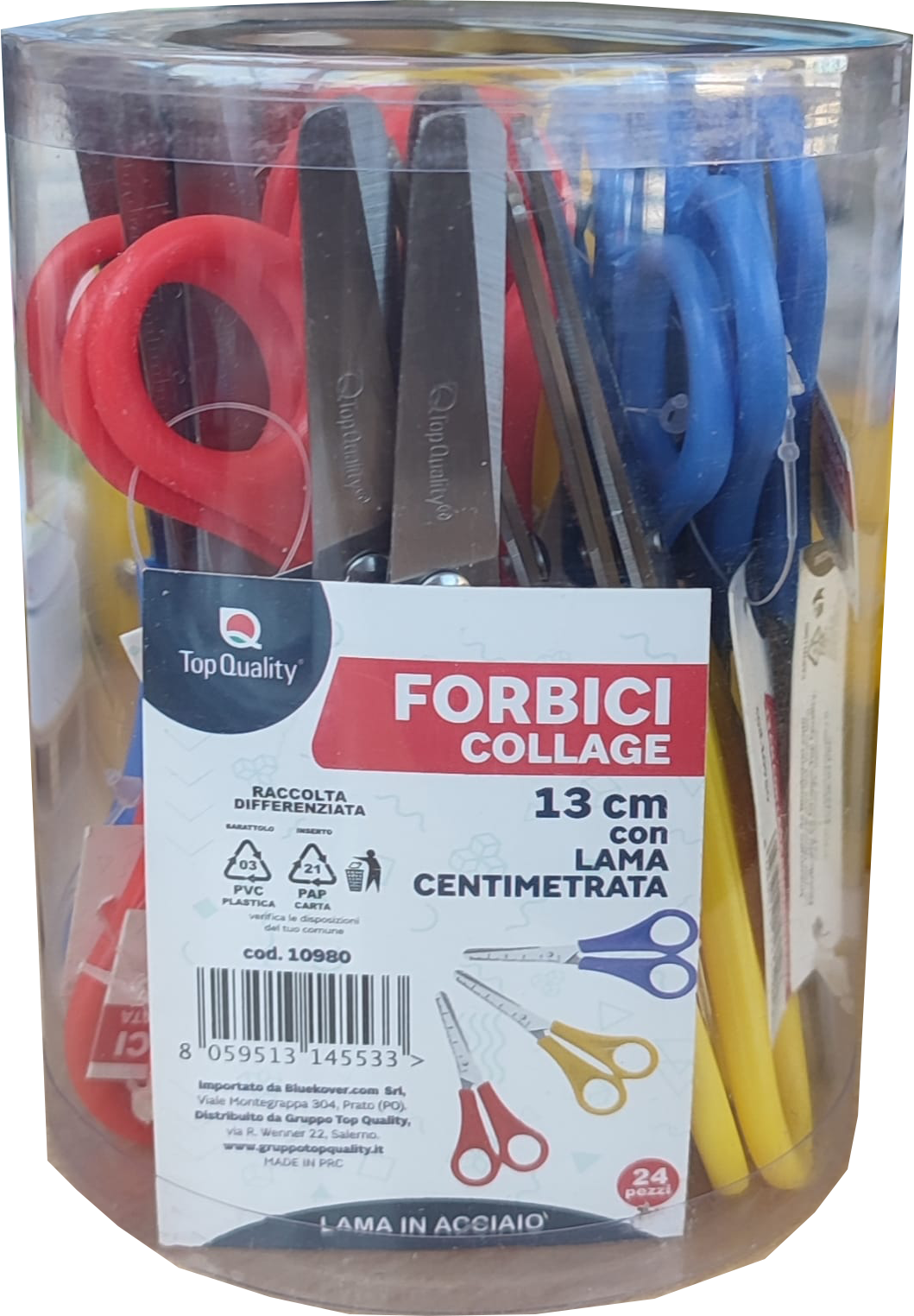 FORBICI COLLAGE LAMA CENTIMETRATA IN ACCIAIO PUNTA ARROTONDATA 13,5cm CONFEZIONE DA 24pz