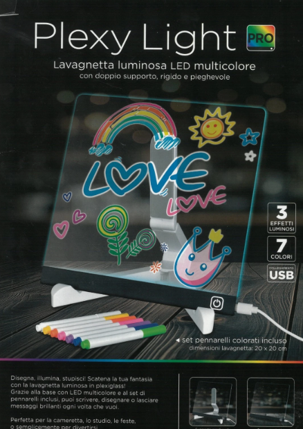 Lavagnetta Luminosa LED multicolore 20x20 Con Doppio Supporto Plexy Light