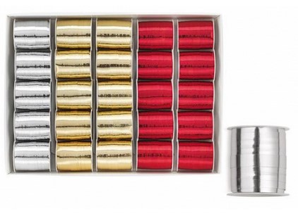 Rotolo nastrino mm.10x10mt., metallizzato oro-rosso-argento,pezzi 25.