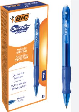 Penna Gel a Scatto Gelocity Bic - Colore: blu Colore fusto: blu - Punta: 0,7 mm - Impugnatura: gomma -Confezione: 12 penne.