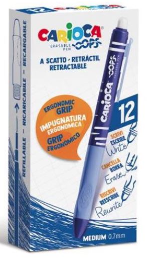 Penne a scatto cancellabili Carioca OOPS inchiostro termosensibile tratto medio 0,7 mm conf. da 12 pezzi colore blu.