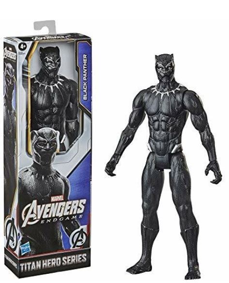 L'eroico King T'Challa protegge la nazione di Wakansa e il mondo intero come Black Panther. Immagina di lanciarti all'avventura con le action figures Avengers ispirate all'Universo Marvel. Grazie a questa linea di giocattoli di ispirazione classica, i bambini possono immaginare l'azione eroica nei panni di Hulk, Iron Man, Captain America e il resto della squadra schierata contro Thanos, la più grande minaccia che l'universo abbia mai conosciuto. Prodotti venduti separatamente. Secondo disponibilità. Immagina il coraggioso King T'Challa che difende Wakanda con questo personaggio Black Panther della Serie Titan Hero! I bambini, collegando il lanciacolpi Titan Hero Blast Gear (venduto separatamente) alla porta posizionata sulla schiena di questa figura, hanno la possibilità di lanciare colpi!