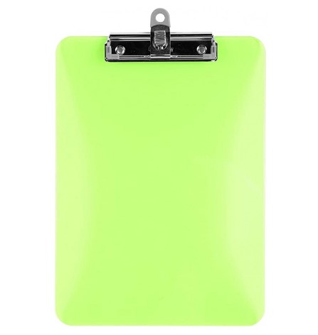 Realizzato in resistente polipropilene rigido colorato traslucido. Con supporto porta penne. Offre una superficie di scrittura rigida e portatile, può contenere fino a 100 fogli di carta da 80gr.Nella parte superiore della clip di metallo è presente un comodo passante/foro retraibile per appendere il portablocco ad una parete, una porta utilizzando viti, ganci o chiodi. 5 colori assortiti.SI PREGA DI SPECIFICARE IN FASE DI ORDINE IL COLORE/MODELLO DESIDERATO ALTRIMENTI VERRA' SPEDITO CASUALMENTE. Formato 22,5x31,5cm per A4.
