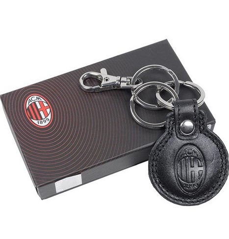 Portachiavi tondo in pelle formato 4,7x5,5cm del Milan.