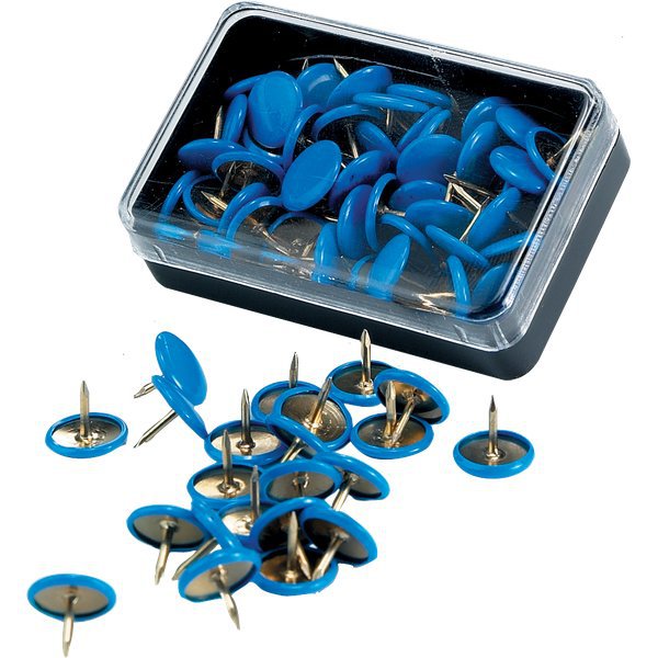 Puntine colorate Inflex antiruggine protette dalla testa di plastica e dall’ottonatura sull’intero corpo metallico. Disponibili nella soluzione monocolore (tutte bianche) o nella confezione per 5 colori assortiti. Acquistando il dispenser da 50 scatoline da 50 pezzi ciascuna, si potranno trovare 10 scatole per ognuno dei 5 colori: bianco, rosso, giallo, verde scuro e azzurro.