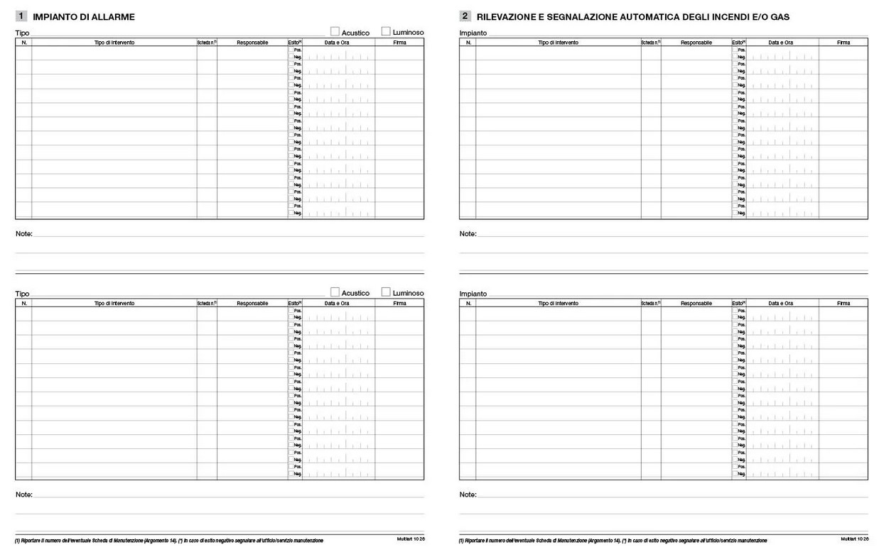 Il registro per la sicurezza e prevenzione incendi è un documento nel quale vanno annotate tutte le attrezzature antincendio presenti in un’azienda. Questo registro deve essere controllato, verificato e annotato e vale sia per le piccole che medie e grandi aziende. Il responsabile della tenuta del registro per la sicurezza e prevenzione incendi è tenuto alla compilazione del documento nel qualedovrà indicare i dati relativi alla squadra di emergenza, alla squadra di primo soccorso, il rappresentante dei lavoratori per la sicurezza ed il responsabile della tenuta del registro. Inoltre dovranno essere inseriti nella prima pagina gli estremi del certificato di prevenzione incendi (C.P.I.) dell’edificio e nella seconda pagina dovranno essere inseriti tutte le dotazioni presenti nell’edificio. Il registro è disponibile nel formato 31 x 24,5 cm con foliazione a 48 pagine.