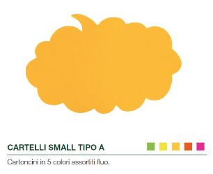 Cartoncini a forma di nuvola confezione in 5 colori assortiti fluo' F.to 10,5X7 cm NB:non è possibile scegliere la variante dell' articolo, confermando l'ordine riceverete uno dei modelli in base allo stock disponibile. Il prezzo indicato vale per un singolo prodotto.