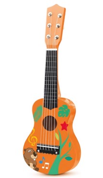 Chitarra colorata, con corde regolabili. Suono dolce e delicato. Ideale per sviluppare il senso del ritmo e della musica. Realizzato con materie prime certificate FSC, provenienti da fonti forestali gestite in modo responsabile. Sviluppato nel rispetto delle più severe norme di sicurezza, vernici atossiche e resistenti.