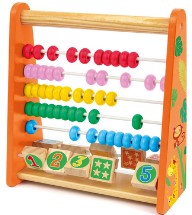 Un colorato pallottoliere ricco di attività. Con palline colorate, numeri e simboli. Ideale per imparare le prime nozioni matematiche. Formato 22x9x24cm.