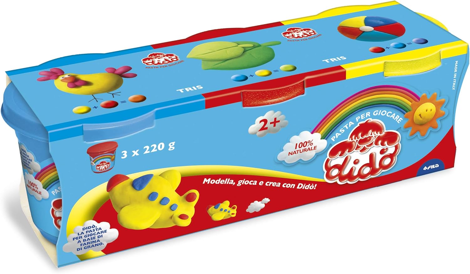 Pasta per giocare morbida, fatta con ingredienti naturali. E' innocua e non macchia. 3 barattoli da 220 grammi.