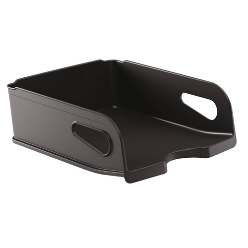 Vaschetta portacorrispondenza Maxi con doppia altezza per alloggiare corrispondenza, cartelle o piccoli pacchi. Impugnature laterali. Per fogli formato A4 fino a 25,5 x 32 cm. Sovrapponibile verticalmente o a scalare. Ampia apertura frontale che facilita l'accesso ai documenti anche quando sono impilati. Colore nero.