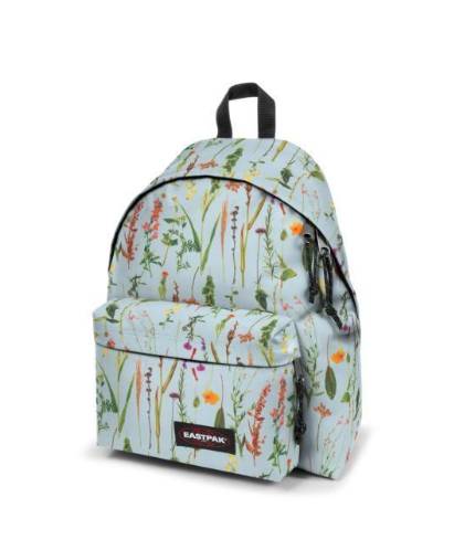 Zaino Eastpak Orbit Mini fantasia fiori su sfondo azzurro. Dimensioni 33.5 x 23 x 15 cm.