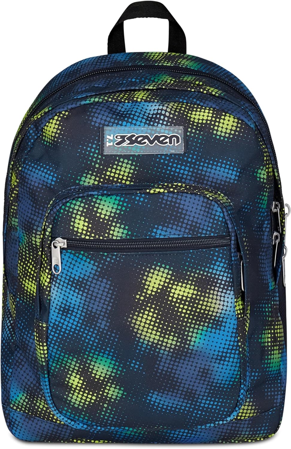 Seven zaino scuola freethink, verde blu, doppio scomparto con tasca per pc e tasca per borraccia, 34 l, scuola media e superiore, zaino ragazzo.