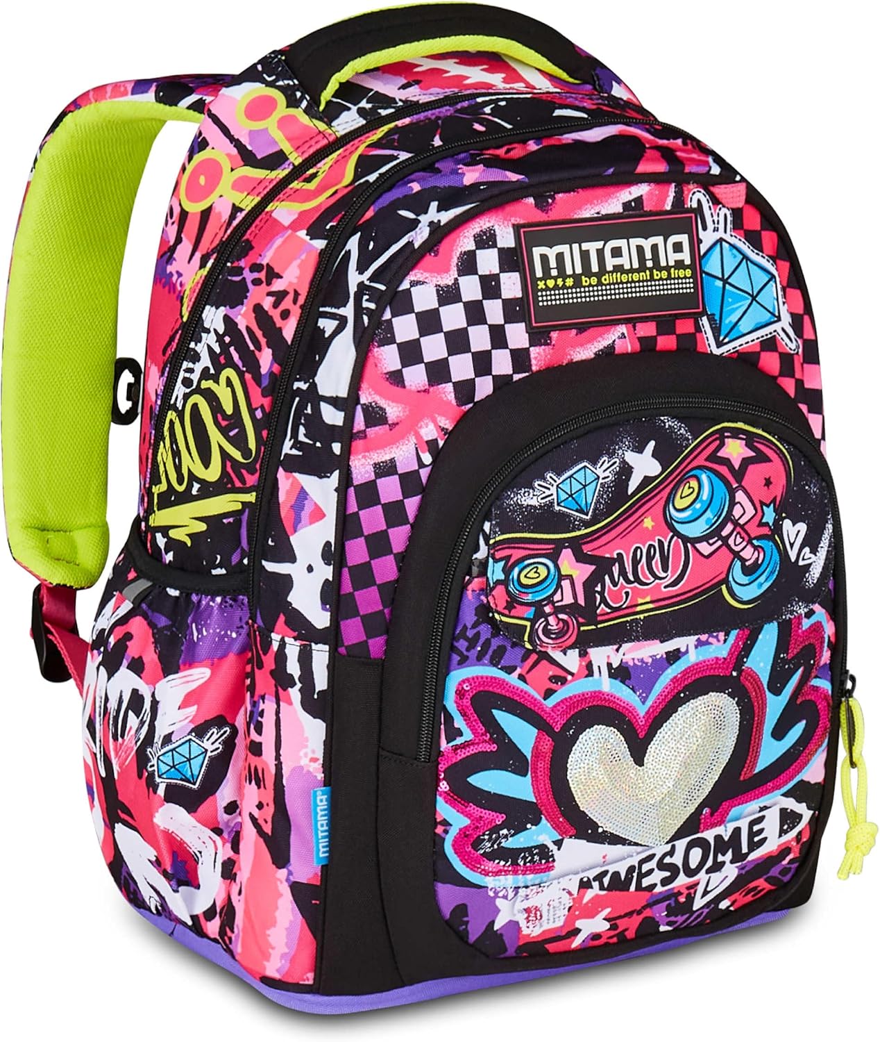 Mitama zaino scuola Urban Queen, New Plus, triplo scomparto, tasche porta borraccia, spallacci ergonomici.